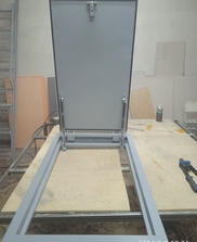 Напольный люк зачастую используют для скрытия спуска в цокольный этаж, в погреб, в подвал или для ниш в полу, в которых находится оборудование для бассейна (люк на фото)